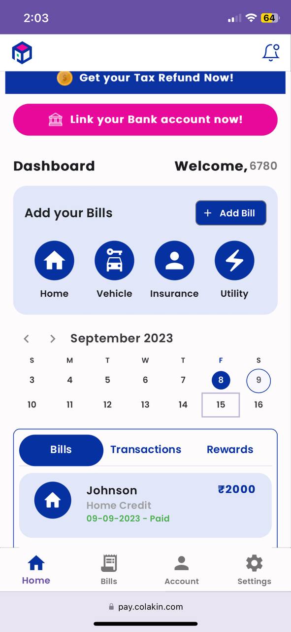 User can see their bill paid status on Dashboard, Bills Tab on tapping respective dates,