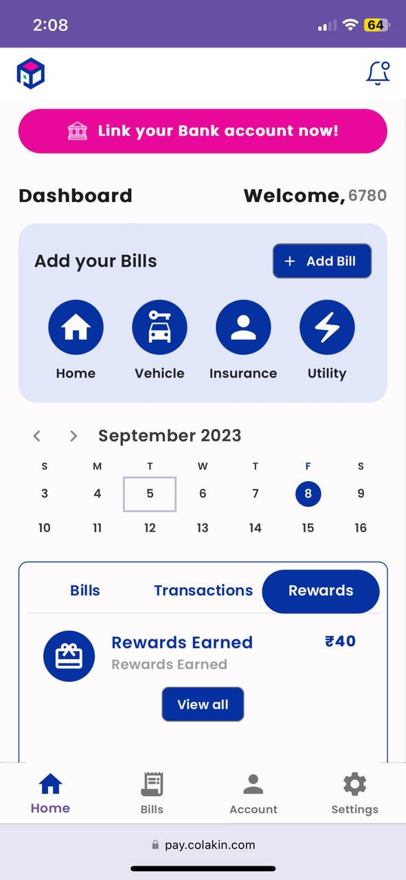 After Bill Payment, Rewards are assigned for respective bills. User can see their reward status on Dashboard, Rewards Tab