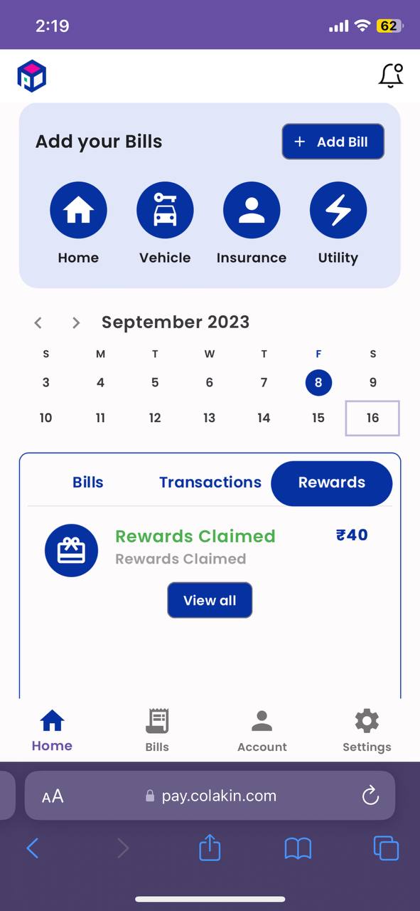 After Reward Earned, User will go to Dashboard and Select Rewards Tab to View Earned Rewards. Then Select View All Button to navigate to Rewards Screen for Claim Reward