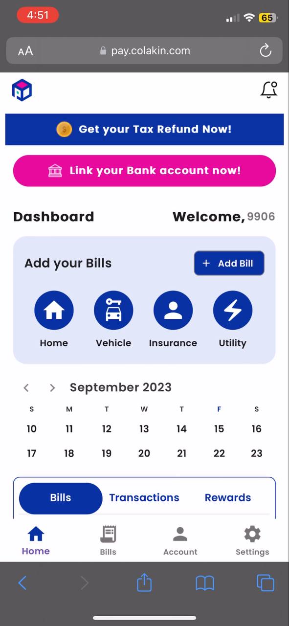On the dashboard, users can view their bills. When they tap on the date of a specific bill, that bill will be displayed in the Bills Tab below.