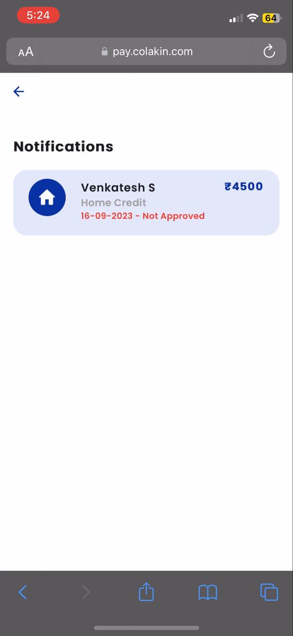 In Notification screen, user can see their Bill Details & Status