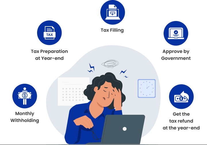 Users have to file for their Income Tax returns at the end of every month for all their paid bills. Even though the users file their tax at the end of the month, they have to wait for an entire year to receive their tax refund amount from the Government. This long waiting period makes the users frustrated and causes some financial crisis. A more efficient system is required to provide users with quicker tax refunds, ensuring better financial stability. Simplifying the tax refund process could greatly benefit users and improve their overall financial experience.